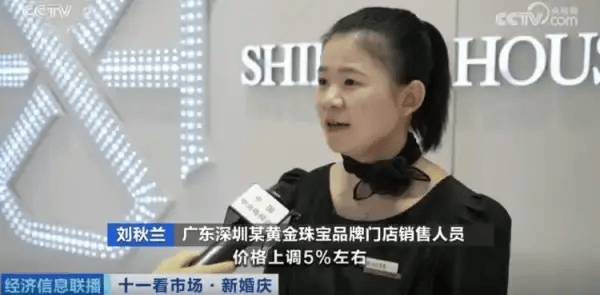 广东深圳某黄金珠宝品牌门店销售人员 刘秋兰:国庆期间,我们针对一口价的产品,价格上调5%左右。